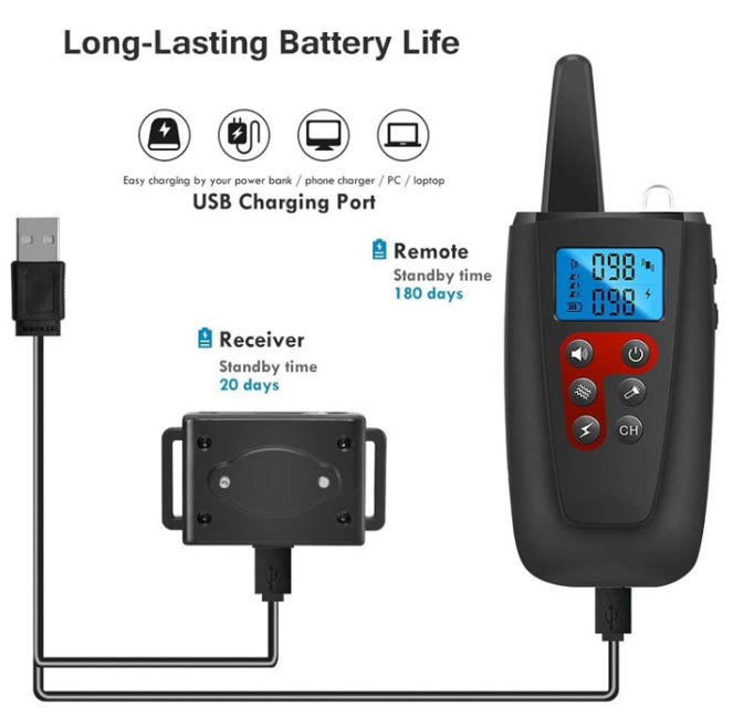 • Extended Battery Life and Waterproof Design: With a remarkable 20-day battery life,the training collar and remote can support extended periods of travelcampingand training sessions without the need for frequent recharging.Additionallythe IPX7 waterproofrating ensures that the collar remains functional and reliable even after your dog enjoys a refreshing swim.