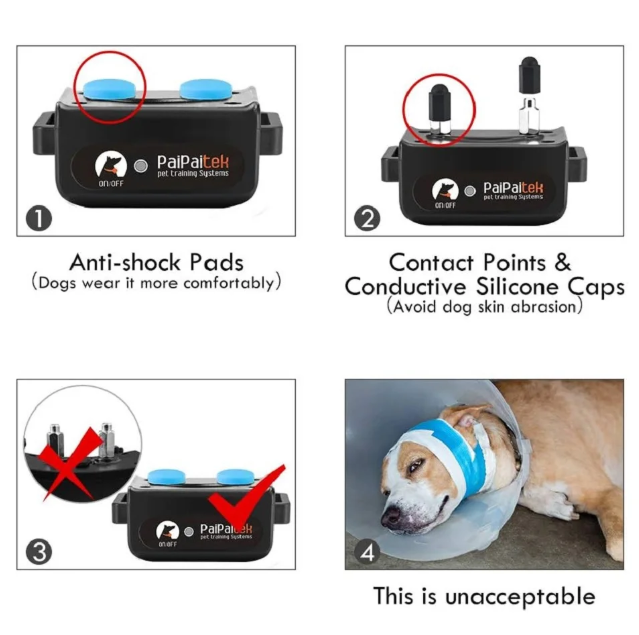 • No Shock for Safe Training: Unlike traditional shock collars that can be harsh anduncomfortable for dogsthe beep or vibration function on this training collar can help redirect their attention and encourage them to stop the undesirable behaviorIt ensures a safe training experience for your beloved pets.
