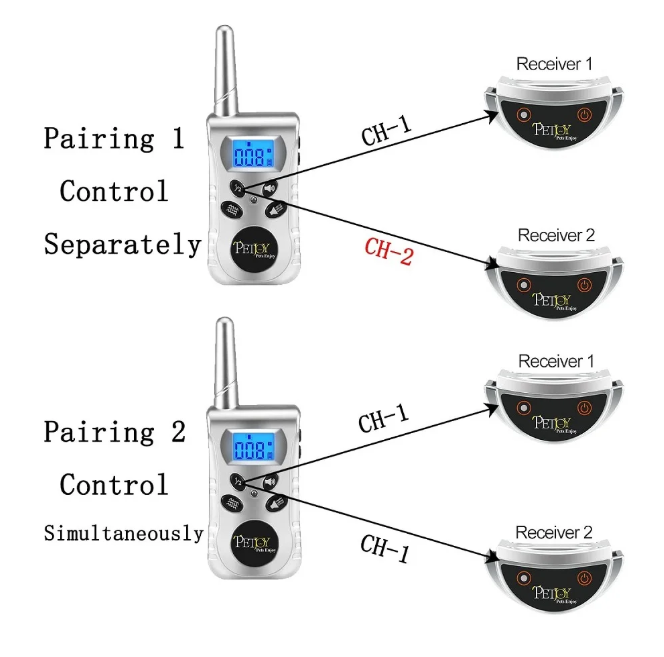 Control Your dogs Simultaneously or Separately Through Channel Pairing.