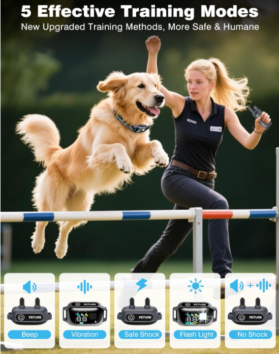 【 𝟑𝟑𝟎𝟎𝐅𝐓 𝐋𝐨𝐧𝐠 𝐑𝐚𝐧𝐠𝐞 & 𝟑 𝐃𝐨𝐠 𝐂𝐨𝐧𝐭𝐫𝐨𝐥 】Peture Barking Collar training range is up to 3300ft, supports remote control of 1-3 Dogs at the same time for instant training, making it easy to enjoy training time with your dog in the backyard, park, forest, wilderness, beach or anywhere else! From now on, no more shouting to have a good puppy!
