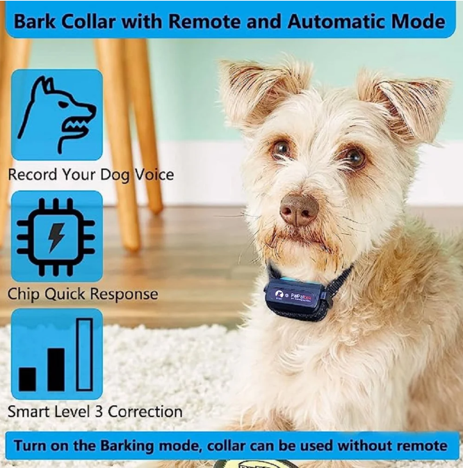 Paipaitek Dog Shock Collar,Dog Training Collar with Remote UP to 3200 Feet, Waterproof Electric Dog Collar with Beep,Vibration,Shock,2 IN 1 Dog Bark Collar