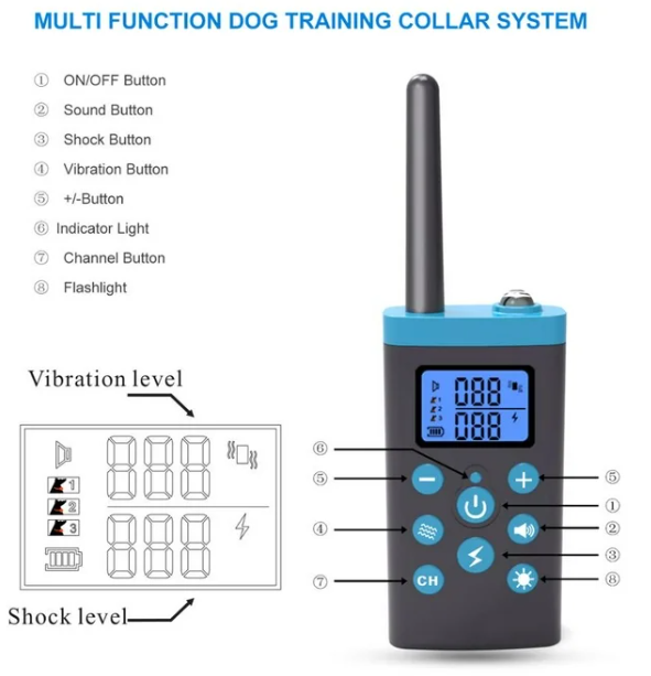 1. PD525-TIO Dog Training Collar can help you train your dog to have good habitswith sound, vibration, static shock and LED lamp functions.